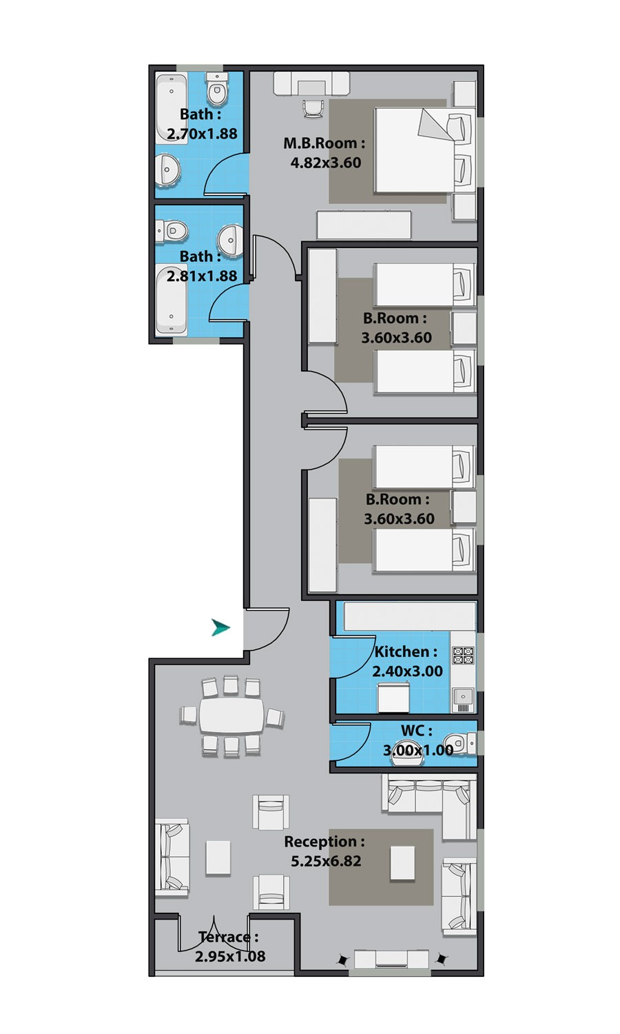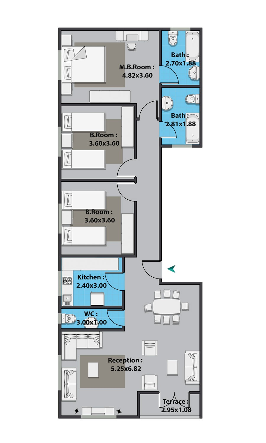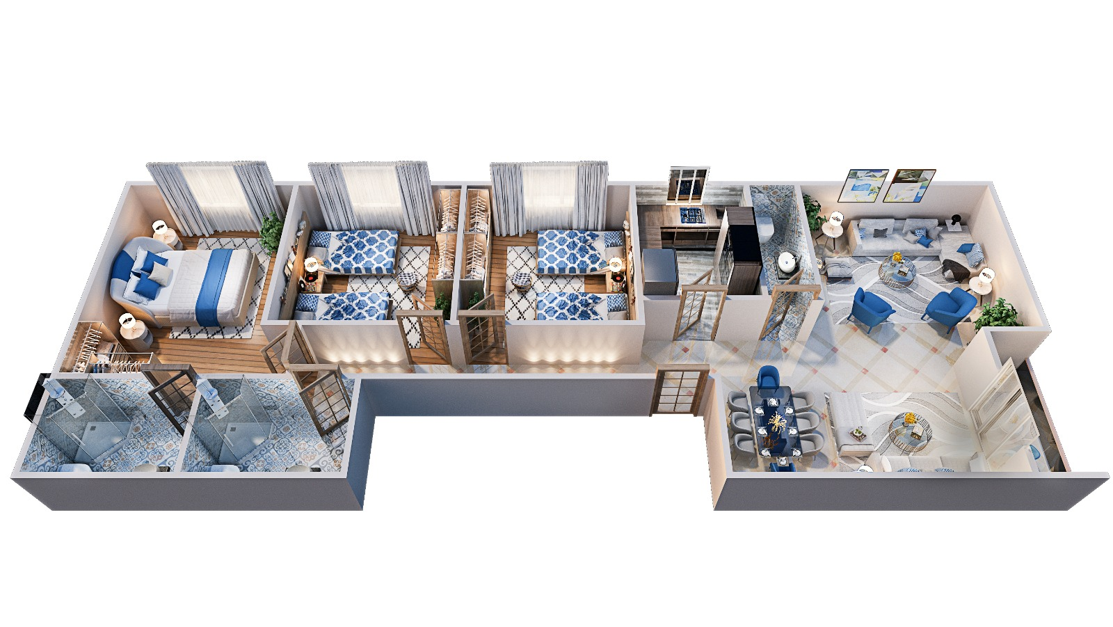 Spacious and Private Balconies: Generously sized balconies and terraces offer private outdoor spaces for relaxation while enhancing the building’s majestic and open feel.