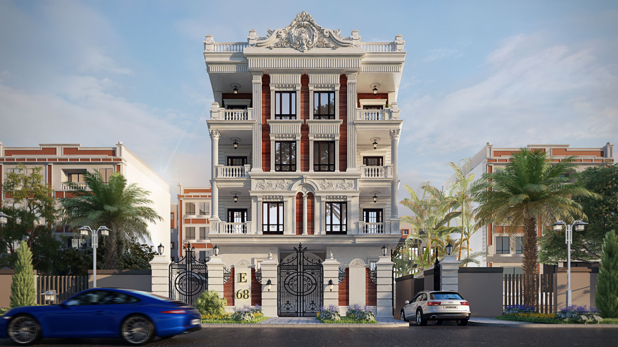 Experience a new level of timeless grandeur at Building E68, a palatial residence that brings the elegance of classical European architecture to the prestigious North House district. Designed for those with an appreciation for fine art and luxurious living, this project is a true statement piece, distinguished by its intricate detailing, stately columns, and an unforgettable facade.